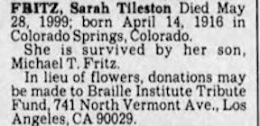Sarah Elizabeth "Sally" Tileston (Fritz) - Class Of 1933