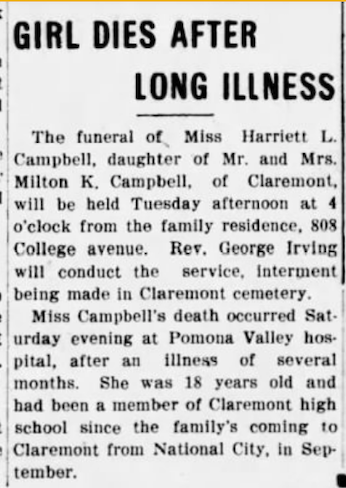 For a deeper look at the history of the Campbell family in Claremont, following is the obituary of the father, Milton Kerr Campbell, Sr.: